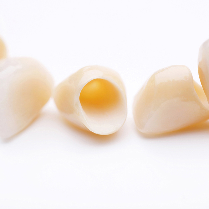 リスクや副作用:型どりの際に歯を削る必要があり、治療時に出血を伴うことがあります。歯の状態によっては神経の治療が必要になる場合があります。また、装着後に噛み合わせの不具合で違和感が生じる場合や、歯ぎしりや噛み締めによる過度な力で割れるリスクがあります。